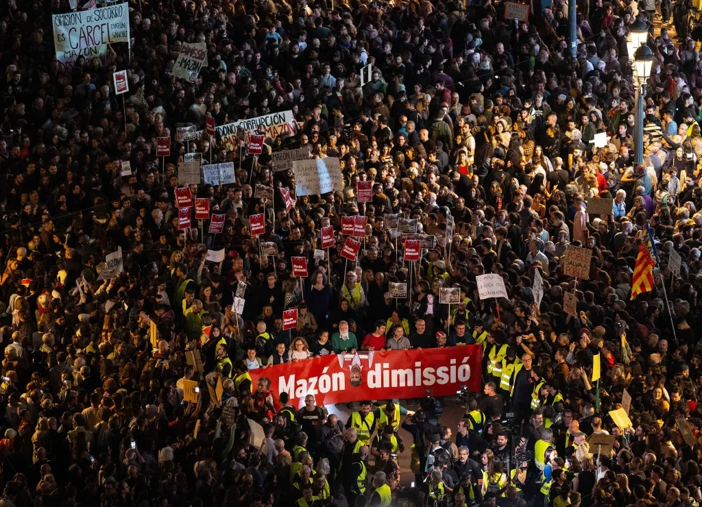 Decenas de miles de personas protestan para exigir la dimisión del presidente de la Generalitat Valenciana por su gestión en inundaciones mortales